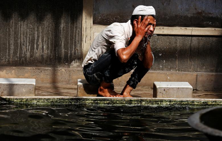 A Muslim man performs ablution before offering the evening prayer on the second day of Ramadan at a mosque in Kolkata, India, May 29, 2017. REUTERS/Rupak De Chowdhuri