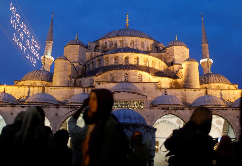 People walk past Ottoman-era Sultanahmet Mosque, also known as the Blue Mosque, in Istanbul, Turkey May 27, 2017. REUTERS/Suhaib Salem