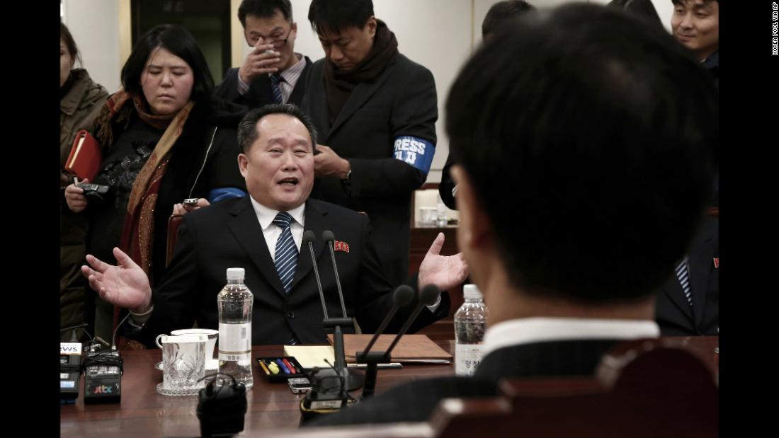 - Head of North Korean delegation Ri Son Gwon speaks to South Korean Unification Cho Myoung-gyon, right, during their meeting at the Panmunjom in the Demilitarized Zone in Paju, South Korea, Tuesday, Jan. 9, 2018. Senior officials from the rival Koreas said Tuesday they would try to achieve a breakthrough in their long-strained ties as they sat for rare talks at the border to discuss how to cooperate in next month’s Winter Olympics in the South and other issues. (Korea Pool via AP)
