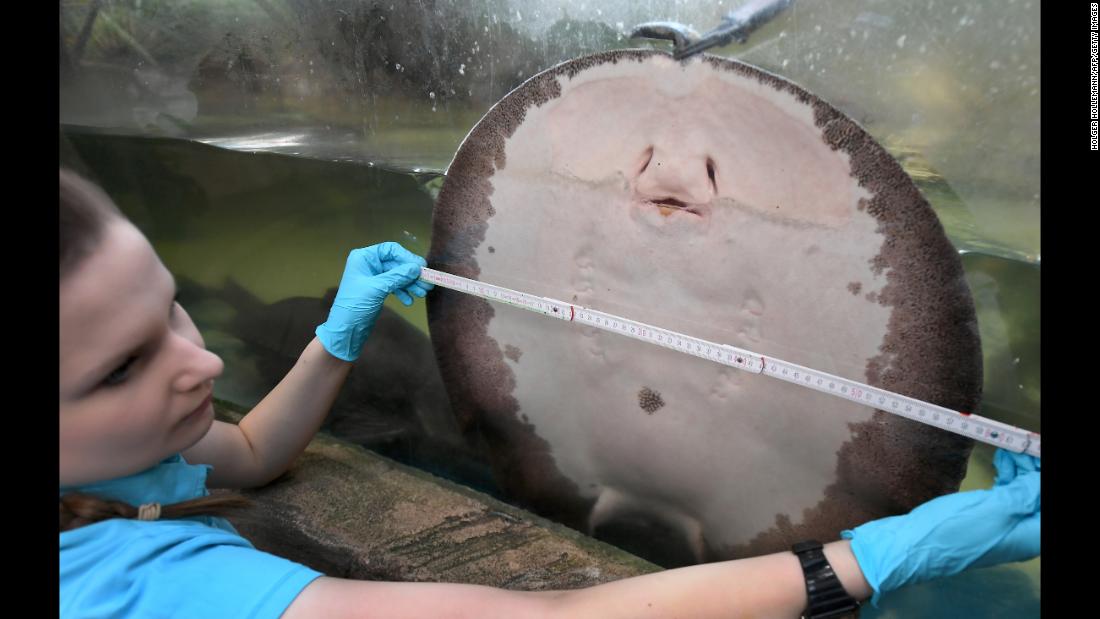 - A freshwater stingray (Potamotrygonidae) is being measured during the annual inventory at the Sea Life aquarium in Hanover, northern Germany, on January 11, 2018. / AFP PHOTO / dpa / Holger Hollemann / Germany OUT (Photo credit should read HOLGER HOLLEMANN/AFP/Getty Images)