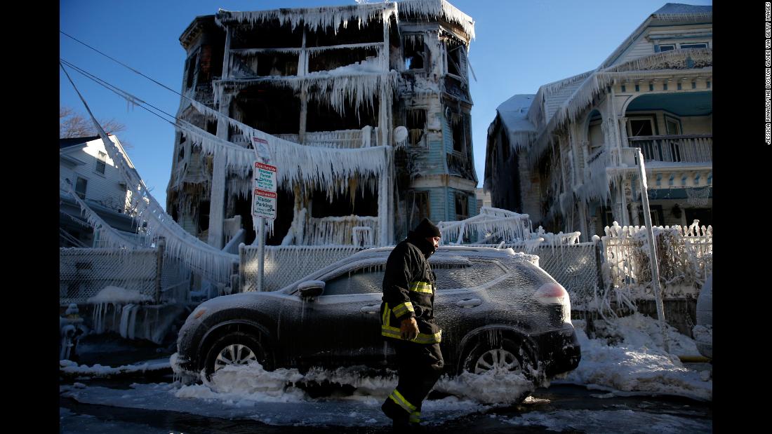 - BOSTON, MA – JANUARY 7: A firefighter walks past a house on Allston Street in the Dorchester neighborhood of Boston that caught fire the previous night on Jan. 7, 2018. (Photo by Jessica Rinaldi/The Boston Globe via Getty Images)