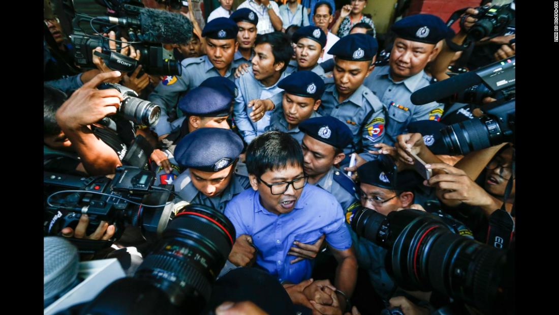 - epaselect epa06428097 Reuters’ journalists Wa Lone (C, front) and Kyaw Soe Oo (C, back) are escorted by police as they leave the court after their first trial in Yangon, Myanmar, 10 January 2018. Reuters journalists Wa Lone and Kyaw Soe Oo were arrested on the outskirts of Yangon city on 12 December 2017 by Myanmar police for allegedly possessing classified police documents. EPA-EFE/LYNN BO BO