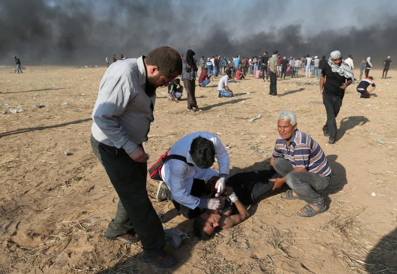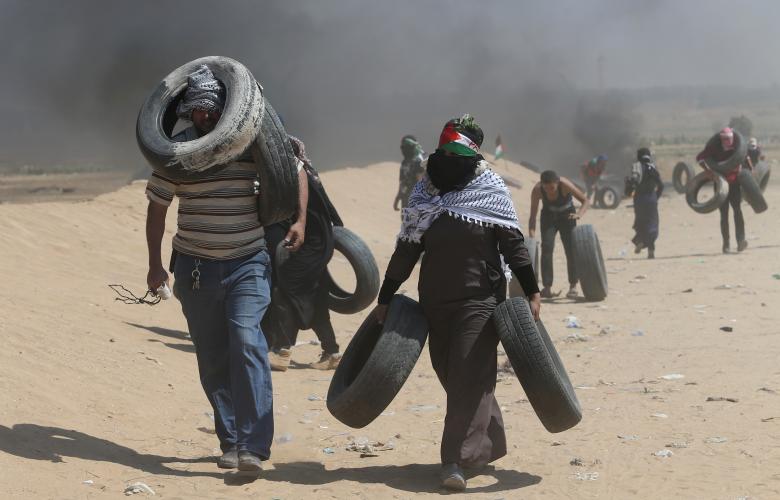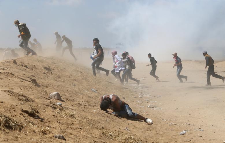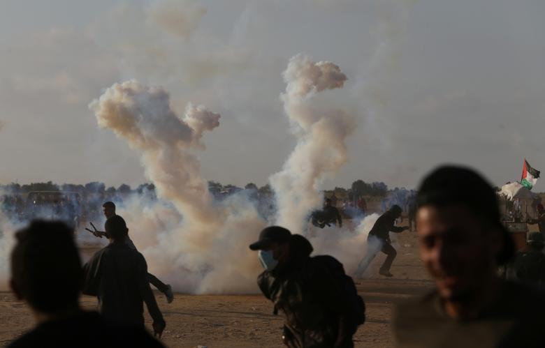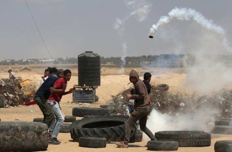- A Palestinian demonstrator fights with Israeli security forces during a protest near Damascus Gate in Jerusalem’s Old City, Israel May 15, 2018. REUTERS/Ammar Awad