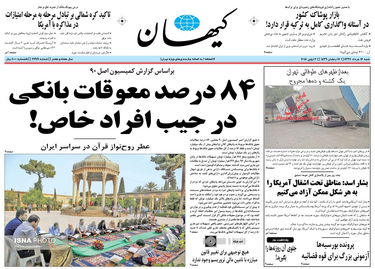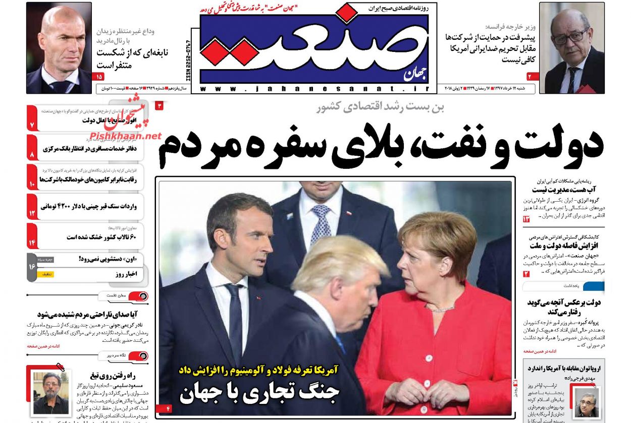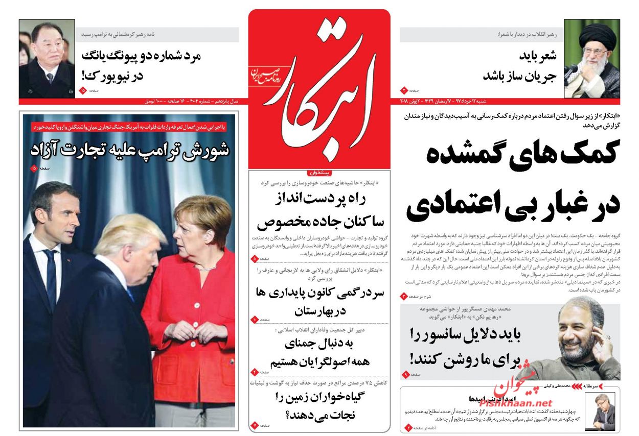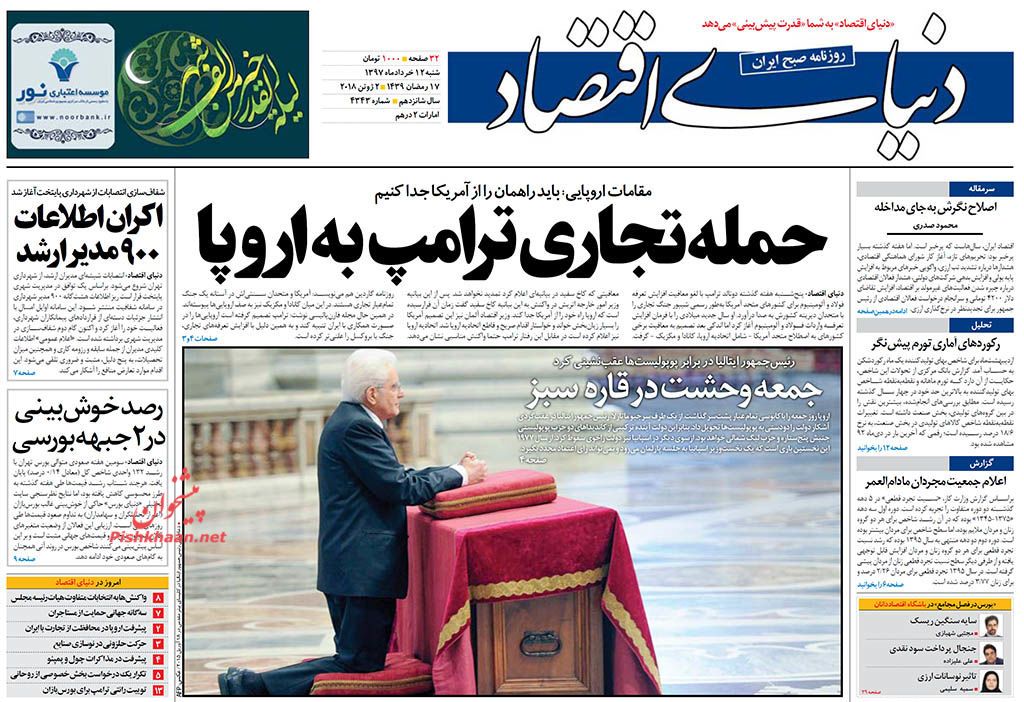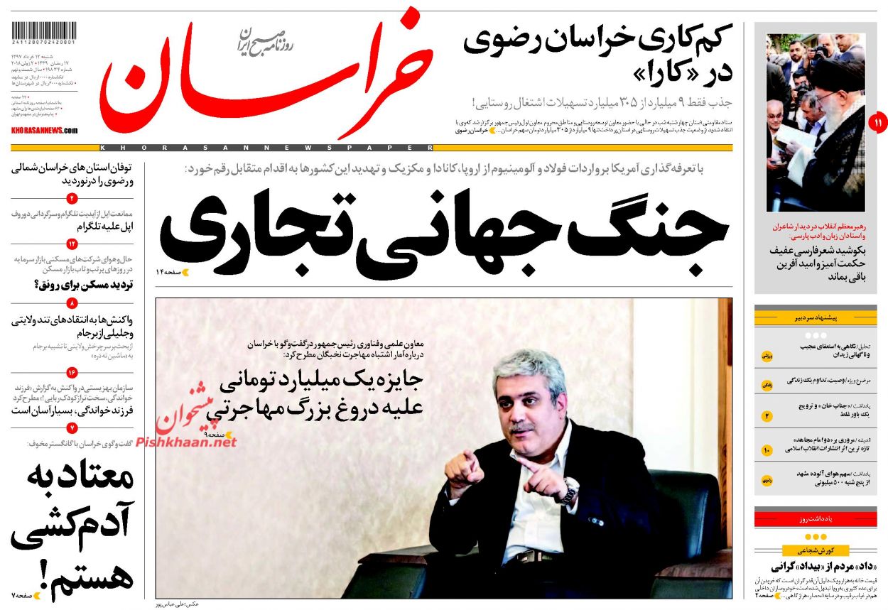 صفحه نخست روزنامه های امروز شنبه ۱۲ خرداد ماه ۹۷