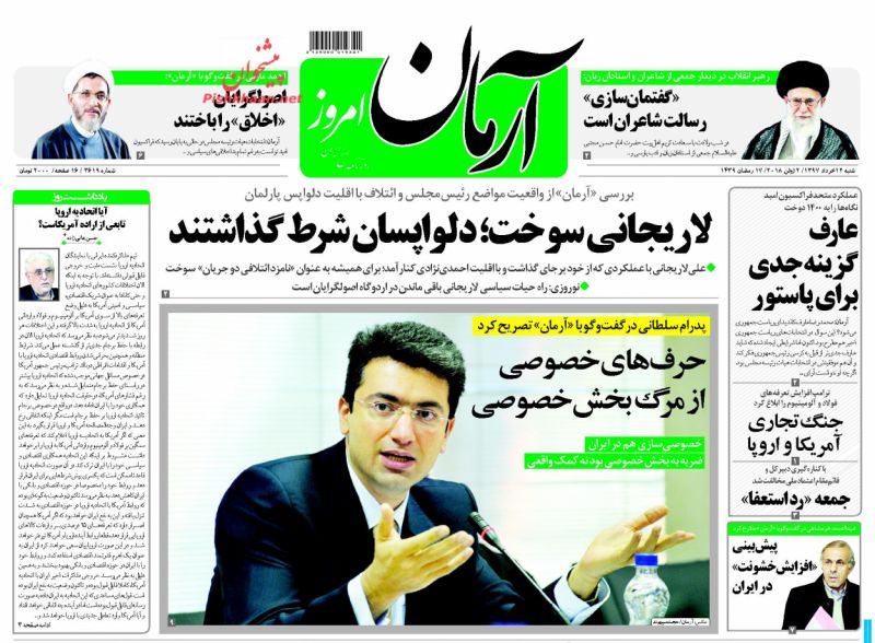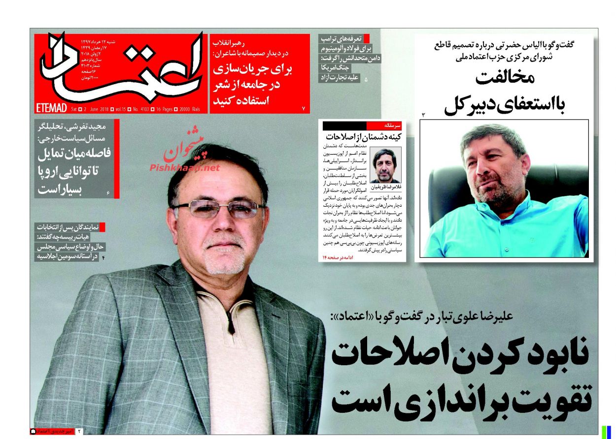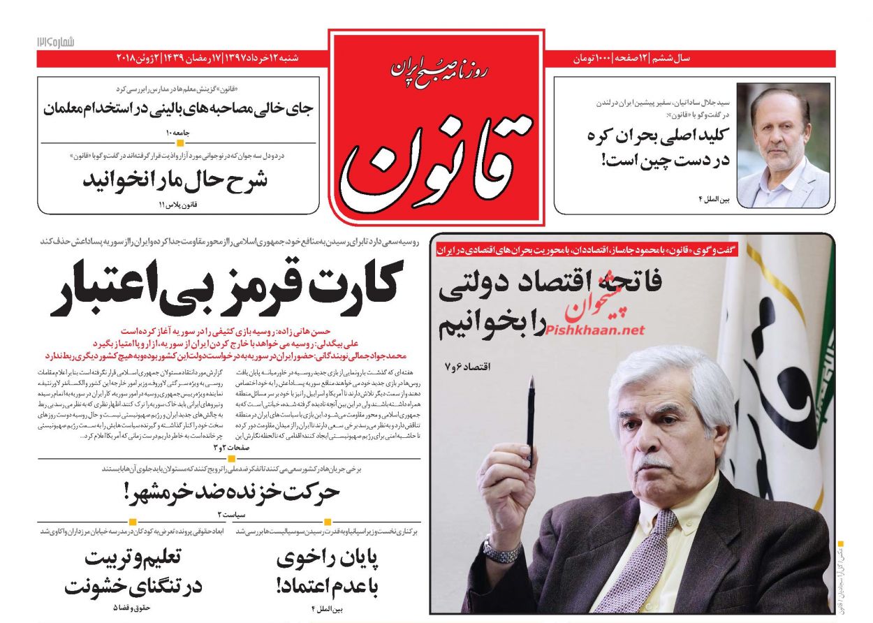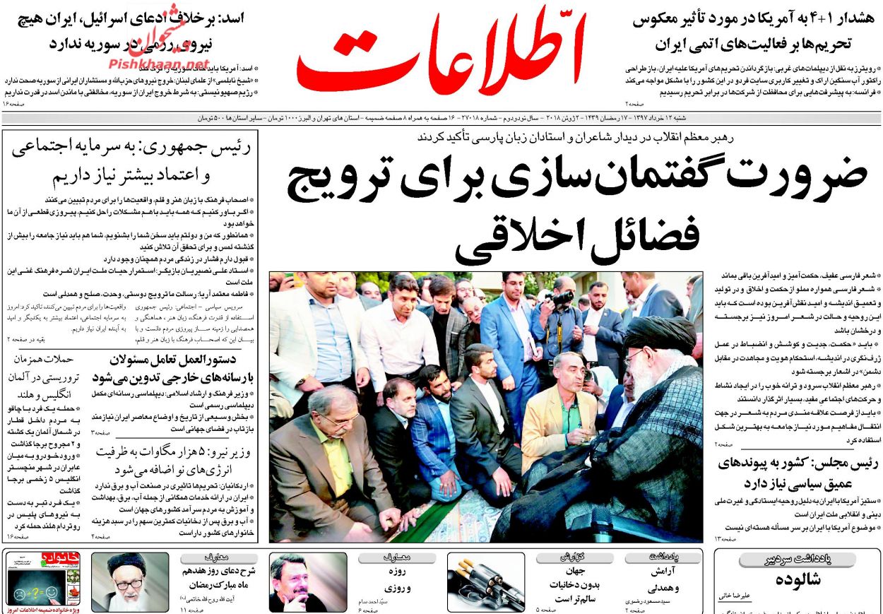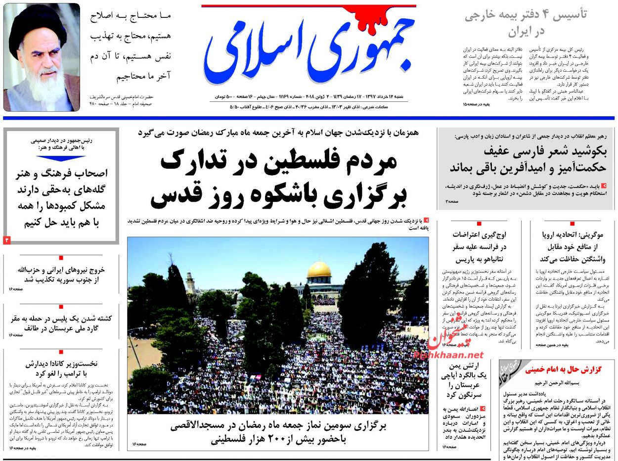 صفحه نخست روزنامه های امروز شنبه ۱۲ خرداد ماه ۹۷