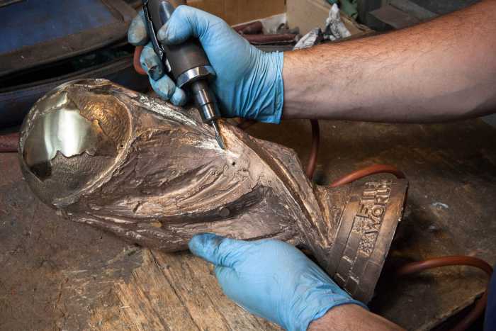 - FIFA World Cup a rise to history Following the first step, manual chiselling with hammer and chisels refines and completes details. Paderno Dugnano, Italy. May 2018. © Paolo Vezzoli