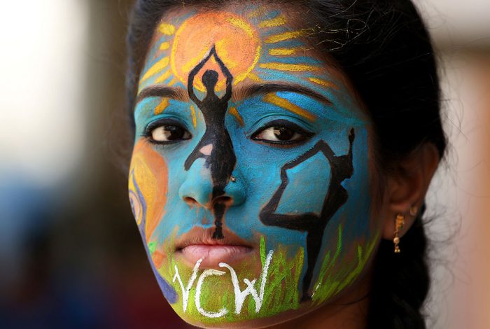 - A college student poses as she displays her painted face as an awareness ahead of International Yoga Day, in Chennai, India June 20, 2018. REUTERS/P.Ravikumar – RC15407EA220
