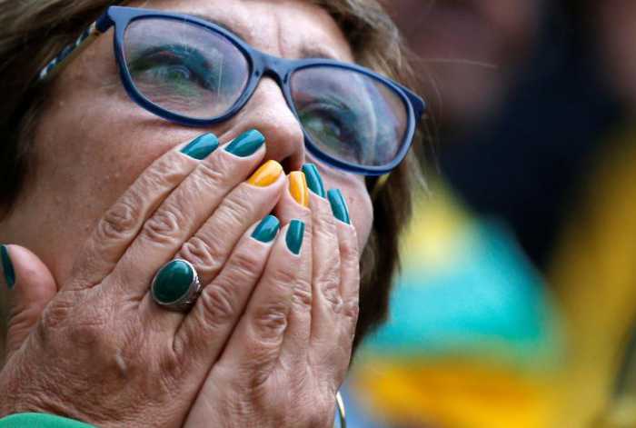 - A Brazil fan reacts during the match against Switzerland. REUTERS/Leonardo Benassatto