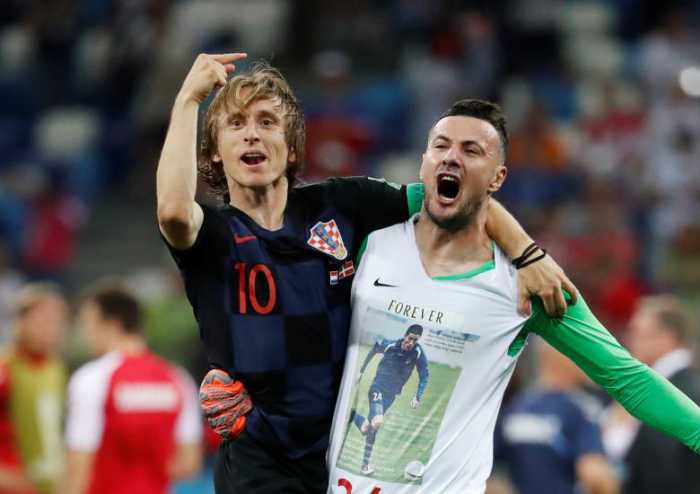 - Croatia’s Danijel Subasic celebrates with Luka Modric after winning the penalty shootout. REUTERS/Damir Sagolj