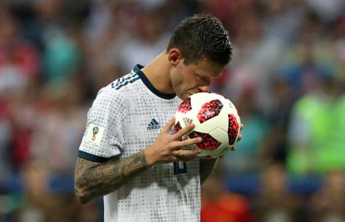 - Russia’s Fyodor Smolov kisses the ball before taking a penalty during the shootout. REUTERS/Albert Gea