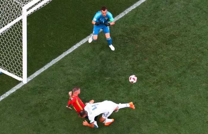 - Russia’s Sergei Ignashevich scores an own goal and the first for Spain. REUTERS/Maxim Shemetov