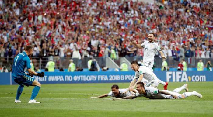 - Russia players celebrate winning the penalty shootout. REUTERS/Carl Recine