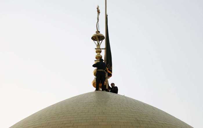 تعویض پرچم گنبد حرم مطهر رضوی در آغاز ماه محرم