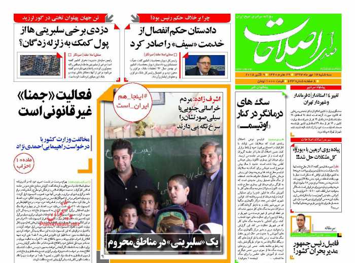 صفحه نخست روزنامه های امروز سه شنبه ۱۷ مهرماه ۹۷