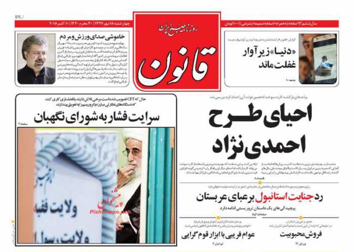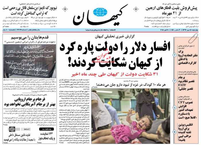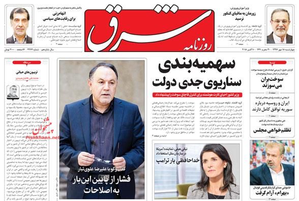 صفحه نخست روزنامه های امروز چهارشنبه ۱۸ مهرماه ۹۷