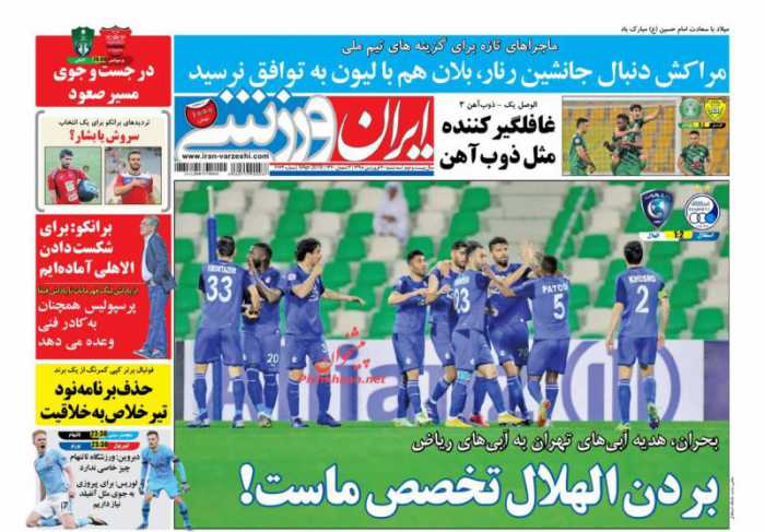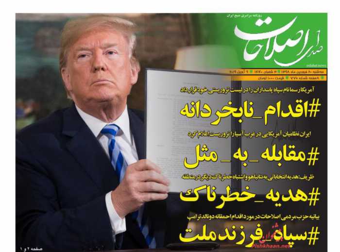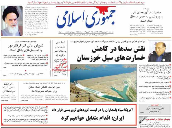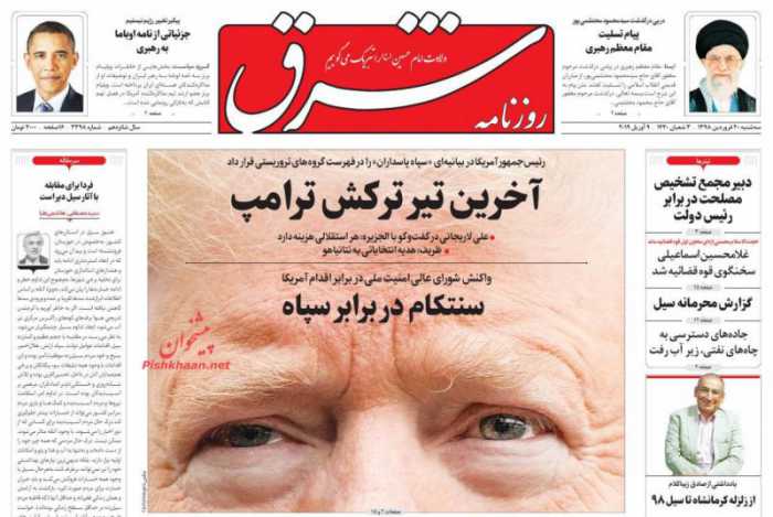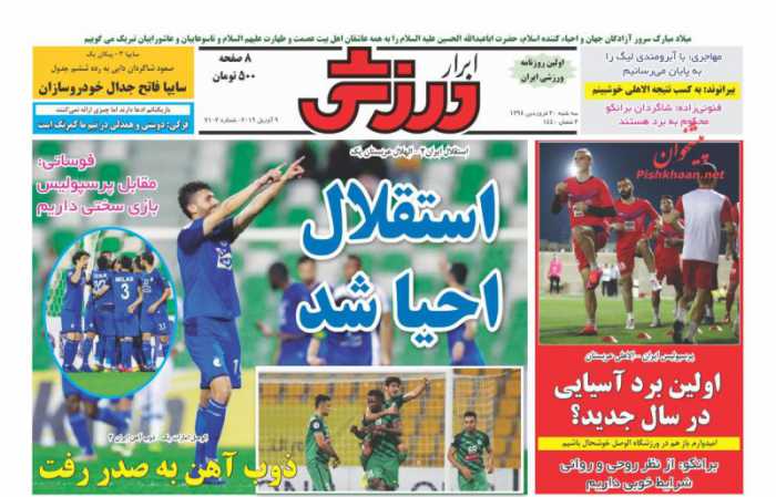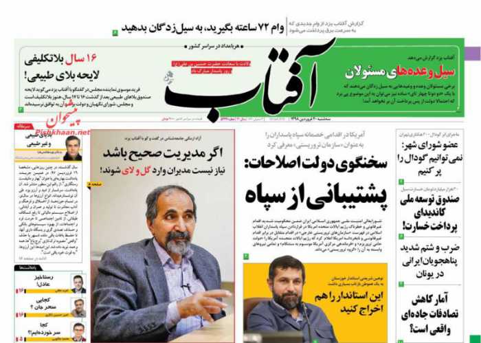صفحه اول روزنامه های ۲۰ فروردین